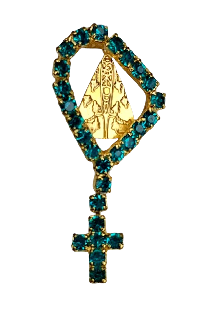 0633-91 - Botton/Pingentes/Broche para Chapéus e Camisa Terço NSA Verde/Dourado